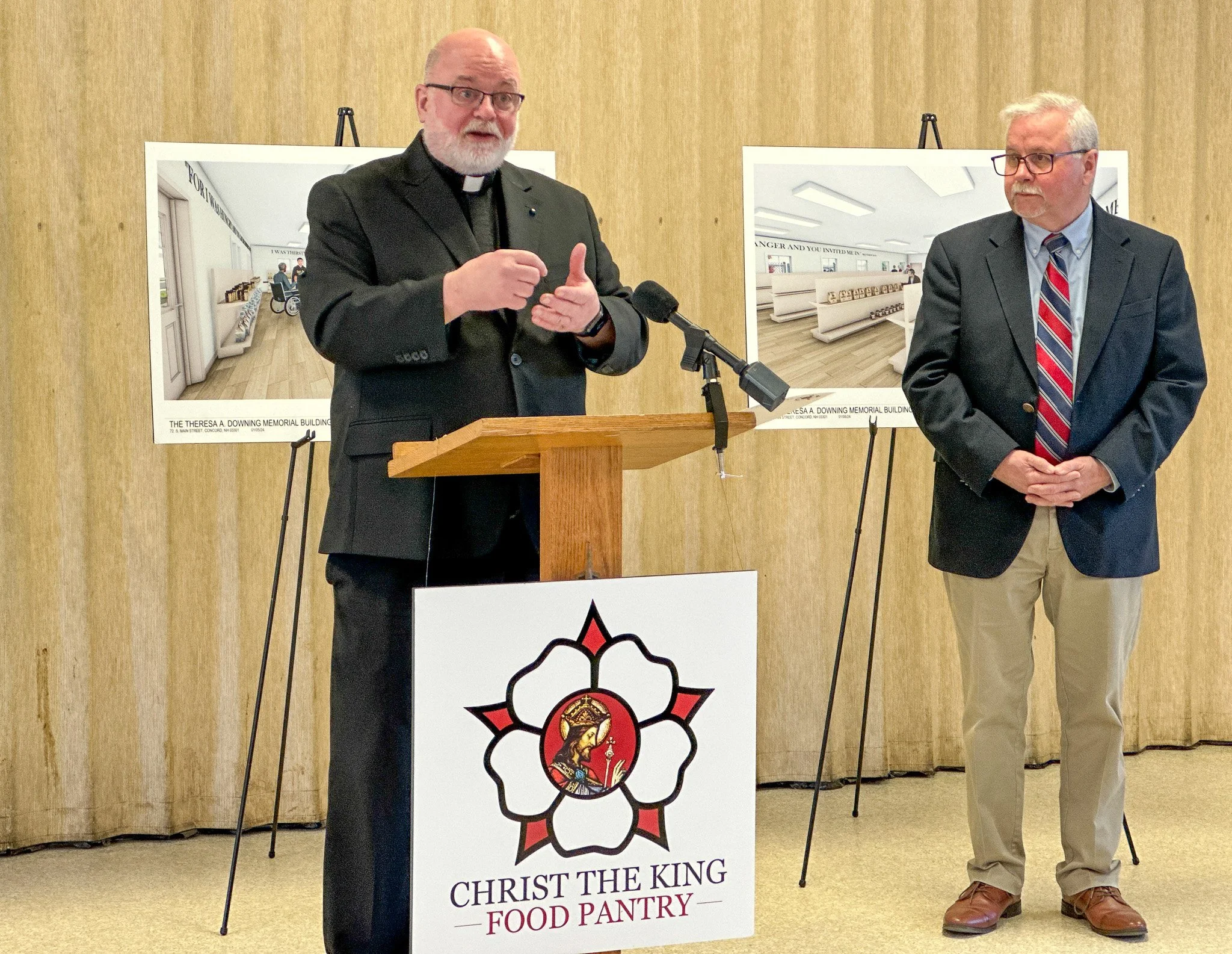 Fr. Richard Roberge, Pastor at Christ the King Parish, announces plans to build a new food pantry